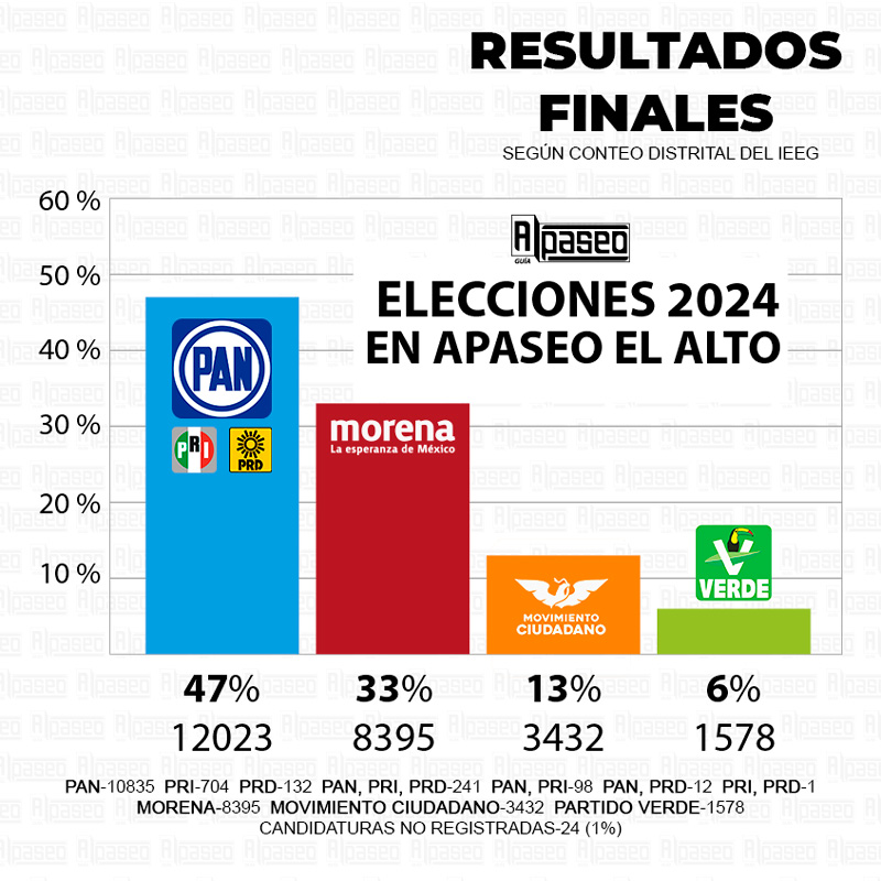 El triunfo lo consiguió obteniendo el 47% del total de votos, y se convierte en la primera candidata de Apaseo el Alto que triunfa en dos elecciones consecutivas. Aunque varios ex-presidentes se han postulado para reelección anteriormente, es la primera ocasión que la población le brinda la confianza para continuar a una candidata o candidato con su proyecto de gobierno. Desde los inicios del municipio, un total de 27 alcaldesas/alcaldes han gobernado Apaseo el Alto, representando a 7 partidos políticos distintos.