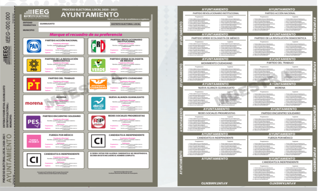 Así son las boletas donde marcarás tu voto para elegir el próximo gobierno municipal de Apaseo el Alto:
