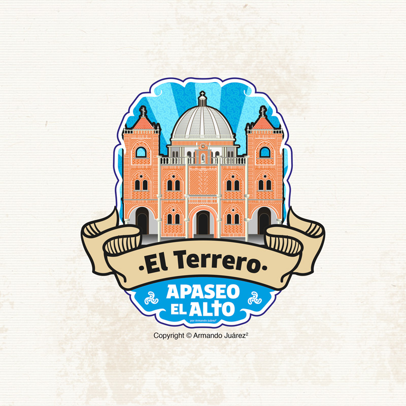 La imagen del templo del Sagrado Corazón de Jesús de Apaseo el Alto dominando el espacio superior, por encima de la línea central imaginaria; se percibe en tonos azules por la distancia a la que se ubica al fondo de la composición.